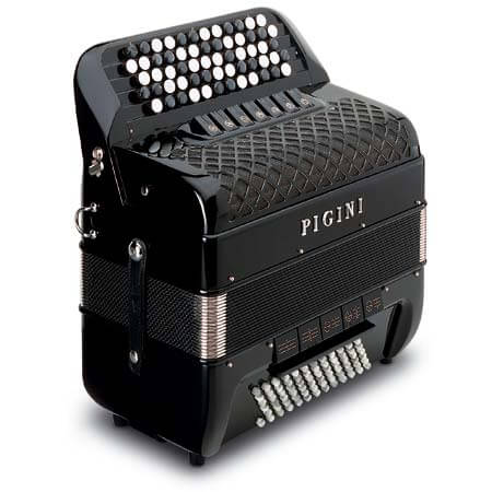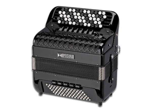 Rechterhand 5 rijen, 72 knoppen, 37 tonen 3 korig, 7 registers