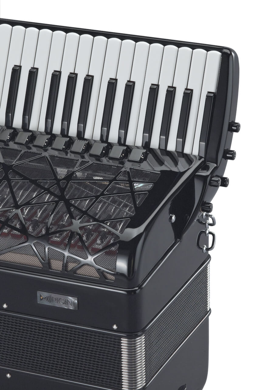 An entirely new series of handmade tongues is designed according to the strictest PIGINI requirements. This new tongue design makes the sounds even more dynamic, guaranteeing a wide, expressive range that effortlessly reaches from pianissimo to fortissimo. The easily appealing tongues, a powerful bass side, the balance is present throughout the instrument. This creates the basis for a seamless collaboration between player and instrument. The player asks and gets a lot.